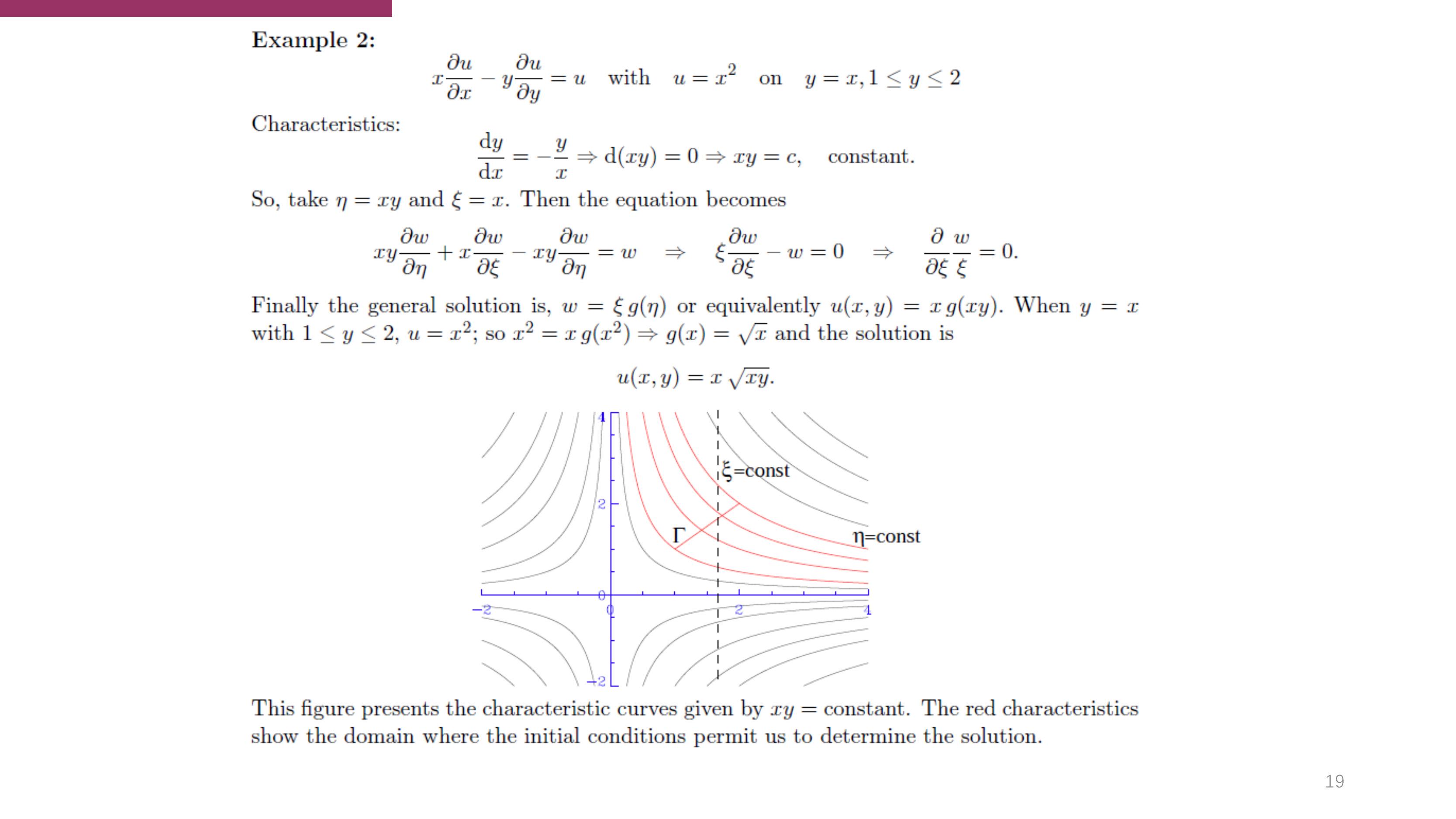 Finally the general solution is, w=ξg(η) or equivalently u(x,y)=xg(xy). When y=x with 1y2,u=x2; so x2=xg(x2)g(x)=x and the solution is